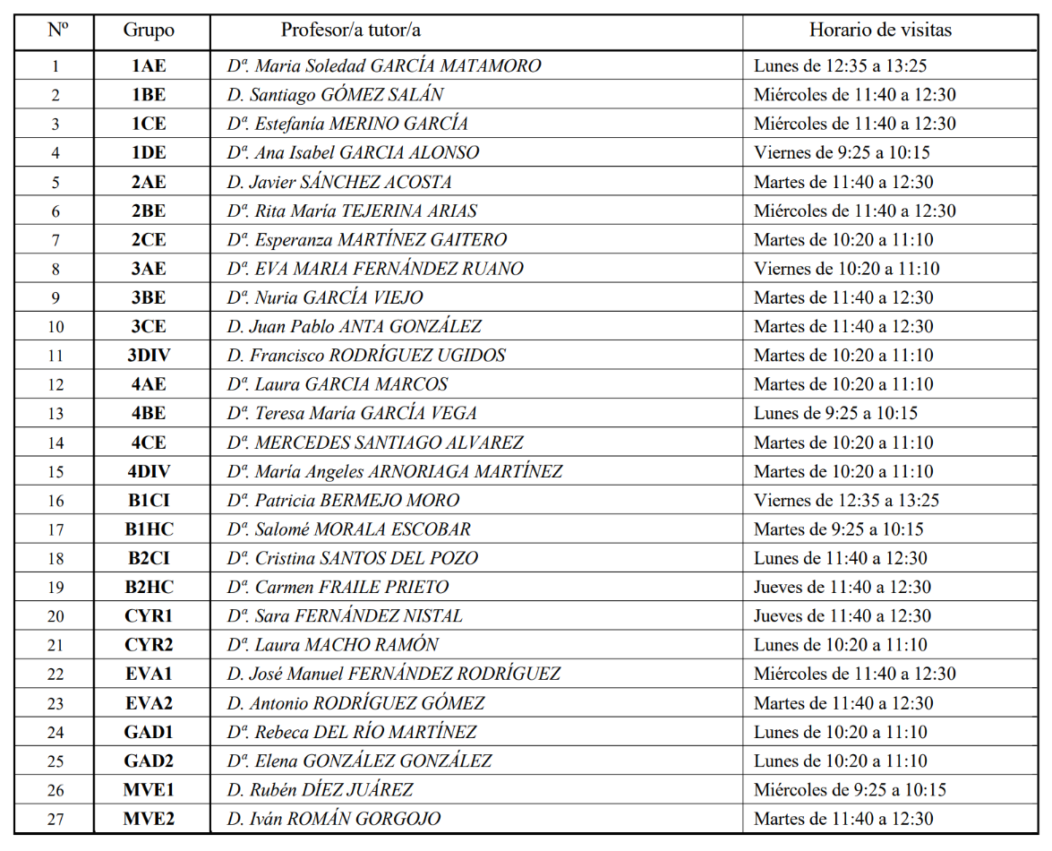 HORAS DE ATENCIÓN A PADRES 2025-2026